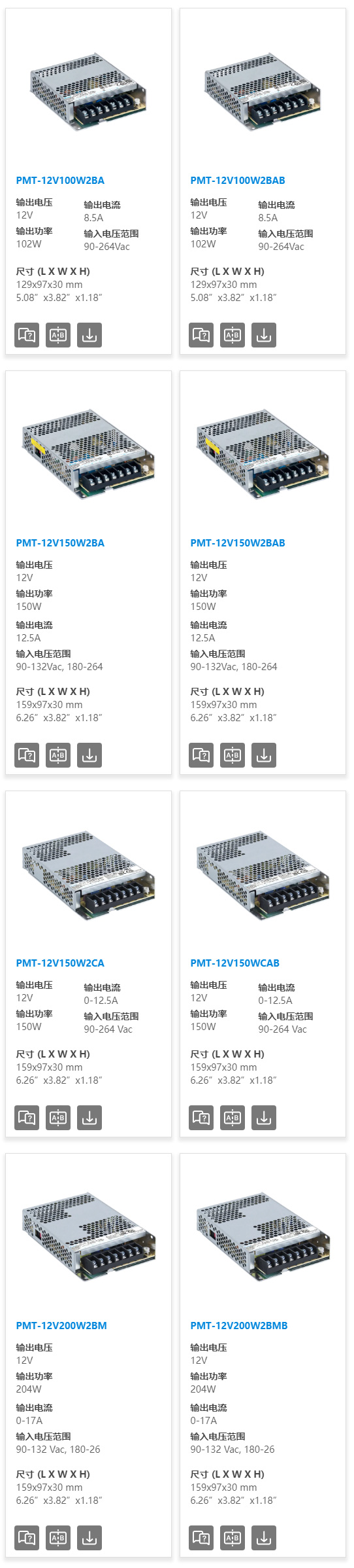 台达提供多种系列的平板型电源,例如具有超薄外形的最新PMT2系列,以满足不同的工业应用需求。