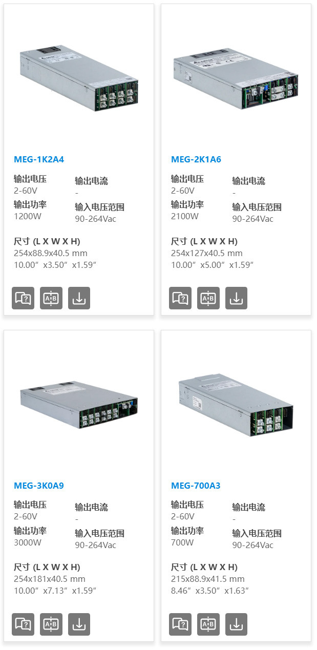 台达提供用于医疗和工业应用的MEG-A系列AC-DC可配置电源。电源模块各自独立,使用者可以依照使用需求,配置单或双输出模块至最大2100瓦的输出组合。适用于于医疗或工业应用。