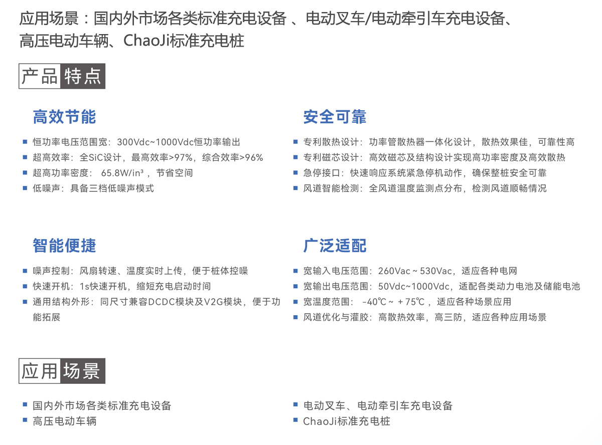 专注于电动汽车充换电技术领域,拥有多年电力电子产品研发经验,在超宽恒功率充电、直通风技术、IP65独立风道技术、液冷技术和高集成领域拥有领先的核心技术和解决方案,